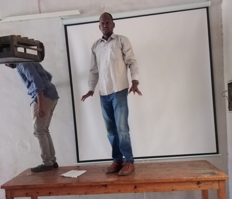 تتواصل أعمال الصيانة والتركيب وتكملة النواقص والمطلوبات بالكلية؛ بإشراف مباشر من السيد عميد الكلية دكتور/ إبراهيم نورالجليل المدني، وبمتابعة ميدانية من نائبه دكتور/ محمد عثمان محمد أحمد. واليوم تم تركيب شاشة وبروجيكتر بكامل الملحقات للقاعة الكبرى، وسيتم في مقبل الأيام؛ بمشيئة الله تعالى؛ تركيب وتوصيل البروجيكترات مكتملة لعديد القاعات. (يظهر في الصورة نائب العميد دكتور/ محمد عثمان محمد أحمد)....