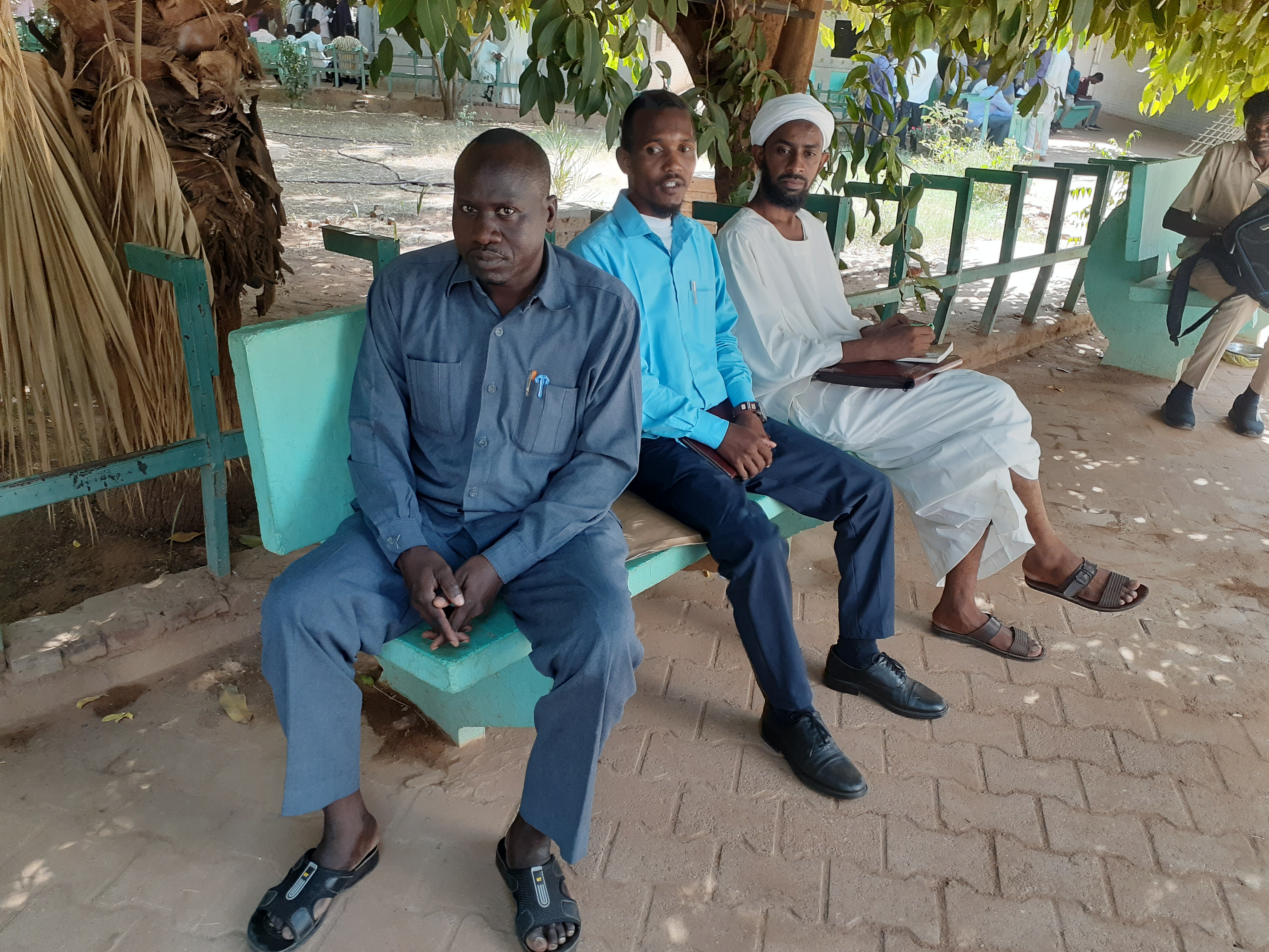 بعض المعلمين في انتظار دخول المعاينات بعد أن حال انقطاع التيار الكهربائي المتكرر بينهم والمكوث بالقاعة المخصصة لهم، وقد كانت معاينات اليوم: